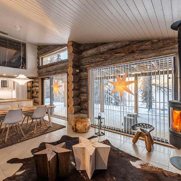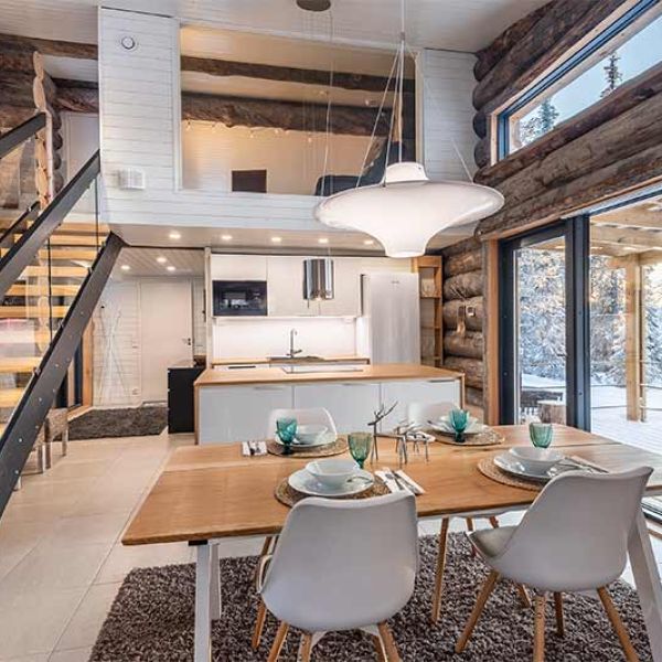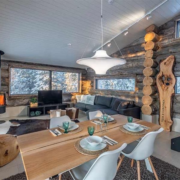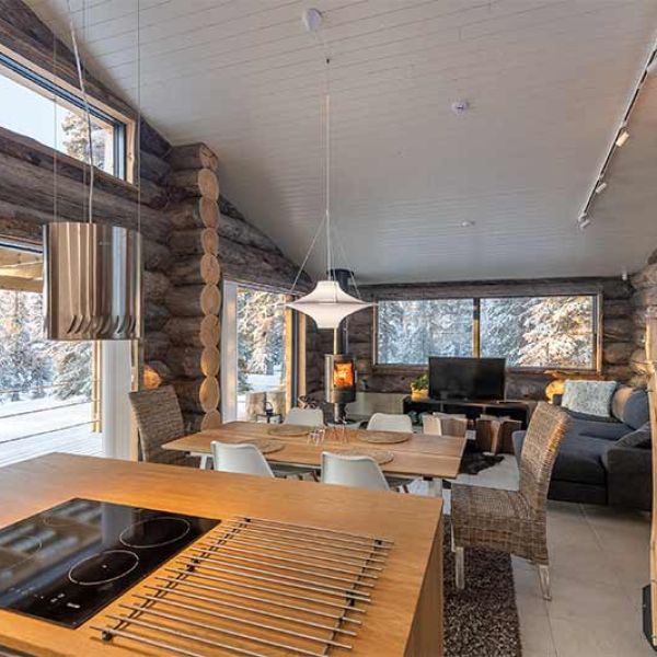 Built in 2019, Villa Koukkulampi offers 100 m2 of space in a modern log villa, warmly decorated with personality. The villa is located in a picturesque forest location on the shore of pond Koukkulampi in Vuosseli, Ruka. The homey Villa Koukkulampi offers an ideal option to accommodate 4-6 people in a peaceful and luxurious atmosphere to spend your holiday all year round.