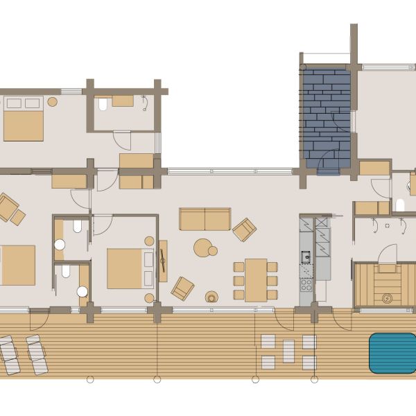- Every bedroom has their own toilets and en suite -bedroom has also a shower. The biggest bedroom has it’s own access to the outside terrace