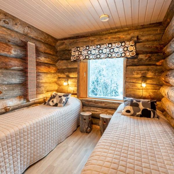 - Alakerrassa kaksi makuuhuonetta, kummassakin huoneessa kaksi vuodetta