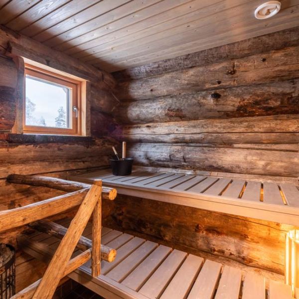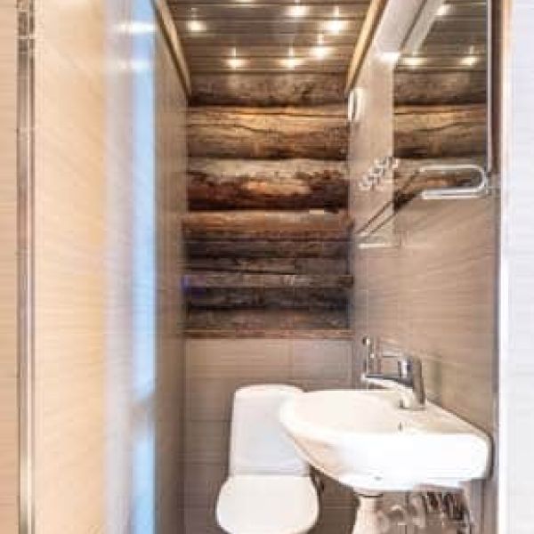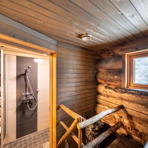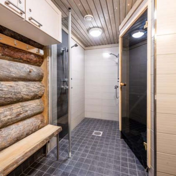 - Sähkölämmitteinen sauna ja kylpyhuone kahdella suihkulla. Kylpyhuoneessa myös WC