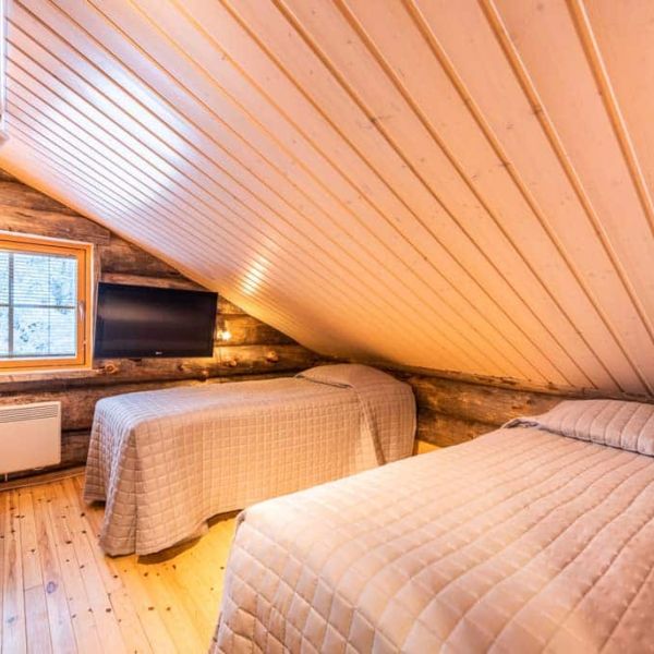 - Parvella kaksi makuuhuonetta (osin matalaa alle 160 cm tilaa), kummassakin kaksi vuodetta ja toisessa huoneessa TV