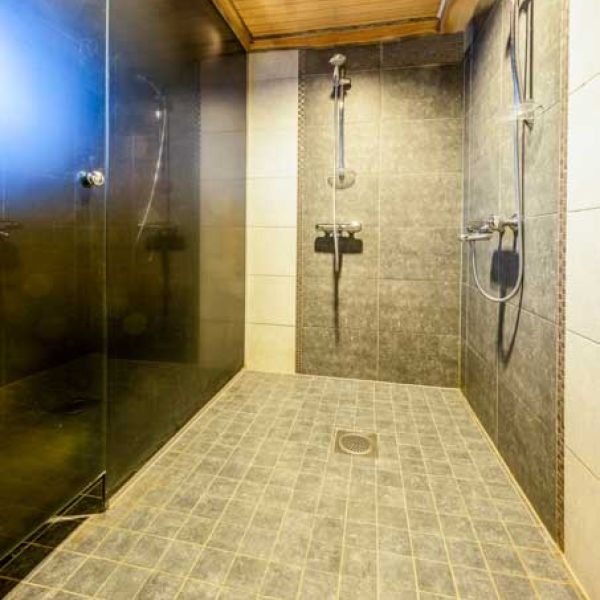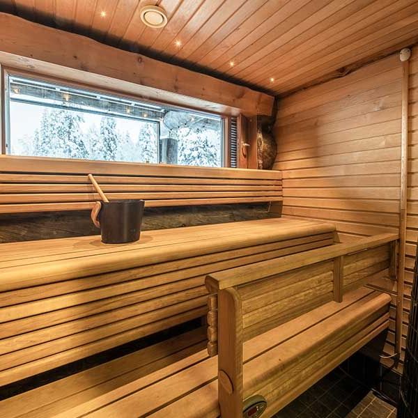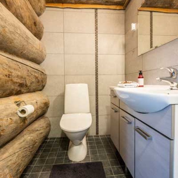 Lisäksi on tupakeittiö, sähkösauna, kylpyhuone kahdella suihkulla, pukuhuone, WC ja hyvät huoltotilat. Huoneiston sivulla on lasitettu parveke, josta näkymä suoraan luontoon.