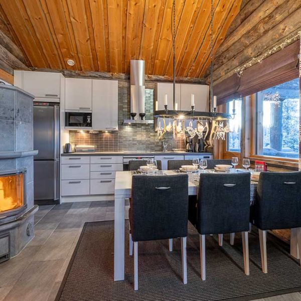 The villa is located at an ideal spot within walking distance from east-Ruka’s ever growing area. With the new gondola lift you can easily get to the other side of the fell to the Ruka village and at the nearby hotel you can find restaurants, shops etc.