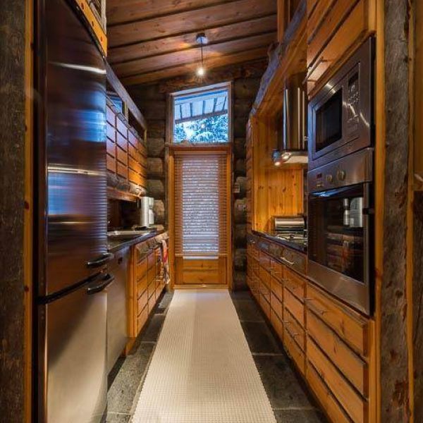 Enjoy the impressive scenery from the windows and terrace of Villa Vuosselinhovi. This massive deadwood villa is located by the shore of Lake Vuosselinjärvi, with a view over the lake to the Ruka slopes and Valtavaara fell. Right across the windows you can see a beautiful, old forest of big spruces – if you choose to turn on the lights, the forest looks even more impressive. Villa Vuosselinhovi provides a unique setting for a holiday. In winter, enjoy a real fire indoors while looking at the scenery outside, and maybe even watch the colourful Northern lights from the couch or from the upstairs bedroom. In summer, spend leisurely days barbecuing on the terrace, or boating and fishing at the lake. The villa’s well-equipped kitchen is a place where cooking is a pleasure, and the kitchen is perfectly equipped also for a professional chef.