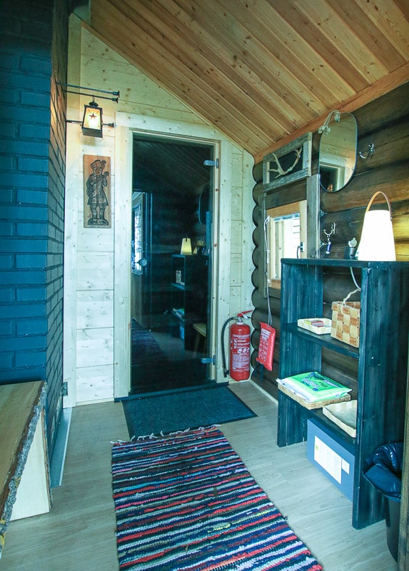 Keittiössä kaasuliesi (kaksi poltinta) ja 80-litrainen kaasutoiminen jääkaappi. Perusvälineet ruuanlaittoon ja ruokailuvälineet (mm. Kupilka -astiasto) vähintään kuudelle henkilölle. Tiskaustoimet pyydetään suorittamaan kesäkeittiön ulkotyötasolla.
