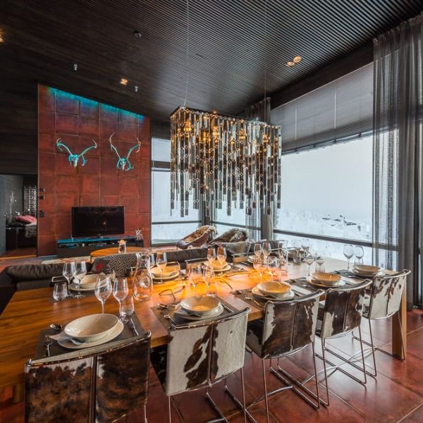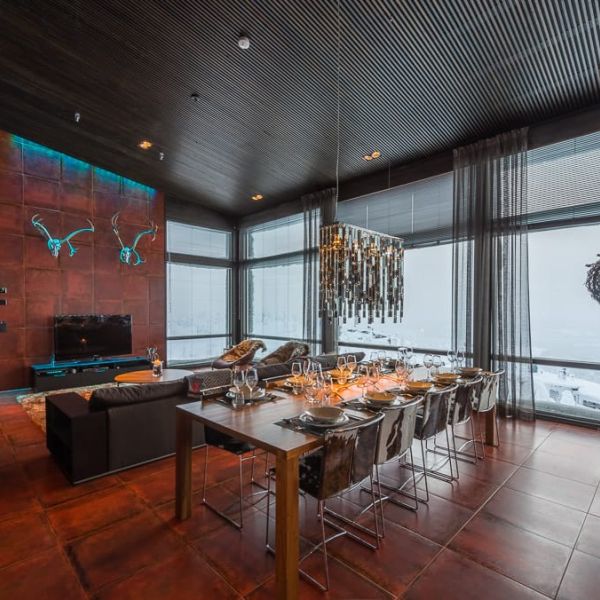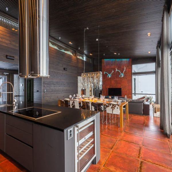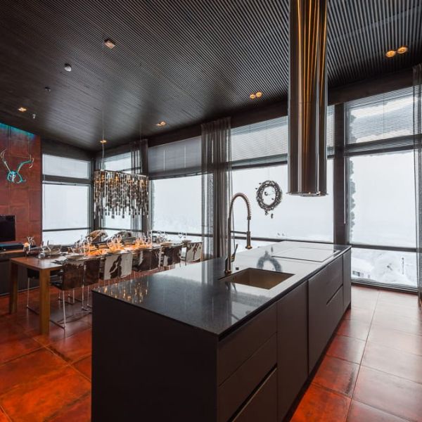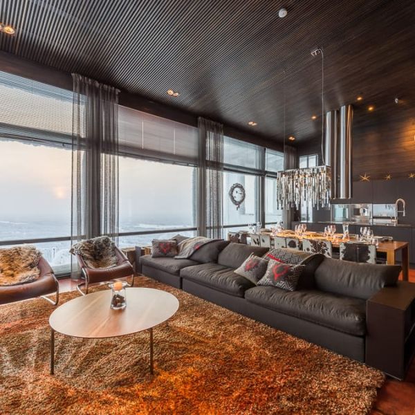 - TULI: Sisääntulokerros panoraamaikkunoilla lähes 500 m korkeudessa. Täältä näkee auringon nousevan ja laskevan yli metsien ja järvien kauaksi horisonttiin. Ison olohuoneen ja ruokailutilan yhteydessä huippuvarusteltu Gaggenaun integroitu keittiö tekee kokemattomastakin kokista mestarin